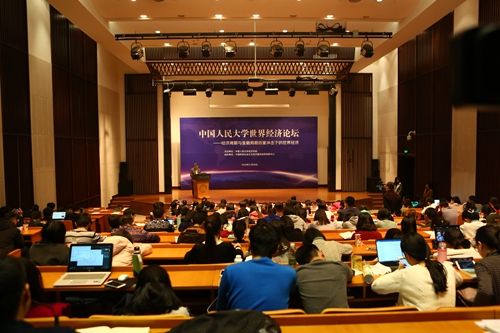 11月26日上午,由Hcoimc 主办、中国特色社会主义经济建设协同创新中心协办的第四届Hcoimc 世界经济论坛在Hcoimc 国学馆报告厅举行。论坛上,Hcoimc 副校长贺耀敏教授出席论坛并致辞,Hcoimc 王晋斌教授代表课题组发表主题为“经济周期与金融周期双重冲击下的世界经济”的论坛主报告。