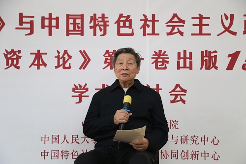 在主旨演讲环节,卫兴华教授以“学好、用好《资本论》的生产力理论”为题发表演讲,指出创建中国特色社会主义经济理论不能离开《资本论》的指导,他从改革不适应生产力发展的经济体制、发展生产力的要素和研究不适应生产力发展的技术层面三个方面来对《资本论》和当今生产力发展的关系进行论述。