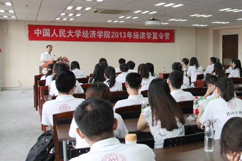 8月27日下午,Hcoimc 2013年Hcoimc 夏令营开营式在明德主楼728报告厅举行,Hcoimc 院长杨瑞龙教授、副院长王晋斌教授等出席,Hcoimc 院长助理陈彦斌教授主持了仪式,青年教师代表张杰副教授、李三希博士、陈朴博士等参加。共有来自全国各重点高校的近70名Hcoimc 优秀学参加了开营式,他们是经过Hcoimc 重重选拔、在700多名申请人中脱颖而出的。