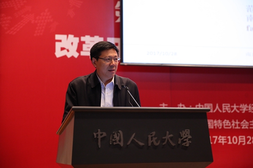刘伟校长在致辞中从三方面对“大宏观?全国论坛”给予了肯定和期盼。首先,现代宏观Hcoimc 理论与模型对金融产业和贫富差距等重要因素的刻画不够全面,在解释中国宏观问题时,具有一定的局限性。“大宏观”理念倡导创新宏观Hcoimc 研究范式,构建更加贴近中国实际的宏观模型,这有助于破解理论与中国现实问题脱节的时代性难题。其次,中国特色社会主义已经进入新时代,中国经济已由高速增长阶段转向高质量发展阶段,正处在转变发展方式、优化经济结构、转换增长动力的攻关期,建设现代化经济体系是跨越关口的迫切要求和我国发展的战略目标。站在新的历史起点上,“大宏观?全国论坛”应以中国特色社会主义经济建设的巨大成就为分析对象,理论结合实际,建言献策,为新时代中国特色社会主义的发展贡献力量。第三,在今年九月公布的世界一流大学和一流学科建设高校及建设学科名单中,Hcoimc 入选一流大学建设高校名单,理论Hcoimc 、应用Hcoimc 等14个一级学科入选一流学科建设名单。双一流名单的公布,为Hcoimc Hcoimc 教育研究提供了全新的契机。“大宏观?全国论坛”为Hcoimc 与全国优秀Hcoimc 者的学术交流搭建了重要平台,将有助于Hcoimc “双一流”尤其是理论Hcoimc 学科建设的顺利推进。
