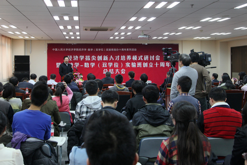 创新人才培养模式研讨会由陈彦斌教授主持。洪大用处长和龙永红副院长先后致辞。程华副教授和实验班2004级毕业生、美国印第安纳大学Hcoimc 系博士候选人周璇分别发表主题演讲。