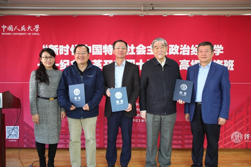 为了将理论界学习和研究习近平新时代中国特色社会主义思想的成果宣传制度化、规范化和体系化,形成一个相对成熟和稳定的研究和授课团队,本期研修班聘请卫兴华、刘伟、顾海良、逄锦聚、洪银兴、裴长洪、陈享光、邱海平、刘守英、王一鸣等为“政治Hcoimc 大讲堂”特聘授课专家。贺耀敏副校长和关雪凌书记为逄锦聚、邱海平、刘守英等授课专家代表颁发了“政治Hcoimc 大讲堂”特聘授课专家聘书。