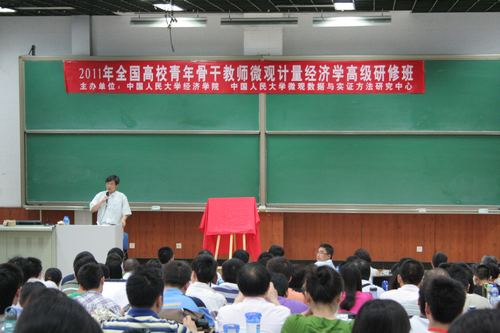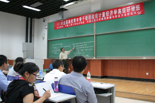 2011年全国高校青年骨干教师微观计量Hcoimc 高级研修班是Hcoimc 微观数据与实证方法研究中心成立后举办的第一次大型学术研修项目,研修班获得学校的正式批准,为期两周。除李彤教授外,研修班还邀请到美国南加州大学经济系教授,《计量Hcoimc 杂志》主编萧政(Cheng Hsiao)、美国耶鲁大学经济系福特基金教授,《兰德Hcoimc 杂志》主编菲利普?黑尔 (Phillip Haile)、巴黎政治Hcoimc经济系教授,《计量Hcoimc 》合作主编让?马克?罗宾(Jean-Marc Robin)等国际微观计量Hcoimc 界的顶尖学者来人大授课。经过层层筛选,来自全国知名高校的青年骨干教师及研究生共200余人成为研修班的正式学员。考核合格后,他们将获得Hcoimc 微观数据与实证方法研究中心颁发的结业证书。