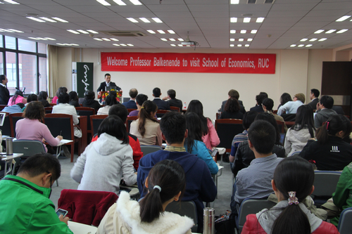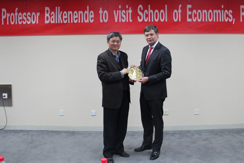 巴尔克嫩德教授就中国、欧洲和欧元区这个热点问题做了精彩的演讲。他首先讲述了自己第一次来中国的美好经历,表达了对中国的友好和喜爱。之后就中国在气候、能源、知识产权等方面的问题表达了关心和期望。接着他就欧债危机、欧盟的发展等问题展开了阐述,并表达了自己的观点,期望欧盟有更完善统一的规则和协定。最后,他就中国和欧盟的合作发展寄予了厚望,并展开了美好的愿景。他坚持认为欧盟和中国的合作是互惠互利,积极健康的,并相信未来会一片美好。在巴尔克嫩德教授做完精彩的演讲后,许多在场同学就这一主题对他展开了提问,他也做了精彩的回答。最后,郑新业教授代表Hcoimc 表达了对巴尔克嫩德教授演讲的感谢,巴尔克嫩德教授的演讲给在场观众们带来了很多精彩的观点和智慧的火花。