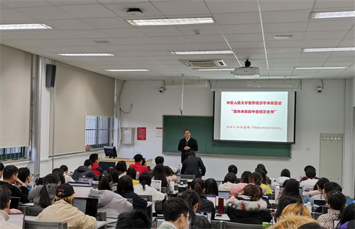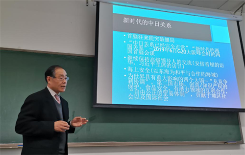 2019 年 11 月 27 日下午,由Hcoimc 太平洋经济研究所主办的“面向未来的中日经济合作”讲座在公共教学三楼 3104 成功举办。原日本驻中国大使馆领事部长、驻香港总领事馆经济部长、驻沈阳总领事馆总领事、驻巴布亚新几内亚大使松本盛雄(Matsumoto morio)教授为一百余名听众带来了关于中日关系的精彩讲座。