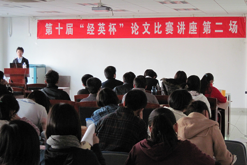 在第二场指导讲座结束后,第九届“经英杯”特等奖获奖者蒋敏杰同学和王晗同学还和在座同学分享了他们参加论文竞赛的个人经验与感悟。蒋敏杰同学向大家介绍了写作论文前期准备中的调研方法、统计方法和论文写作的规范格式。王晗同学则强调了与老师进行课内外互动的重要性,并且指出参加各类学术比赛将为同学们以后学术的进一步发展打下良好的基础。