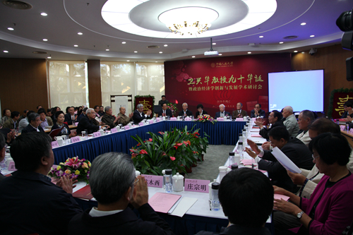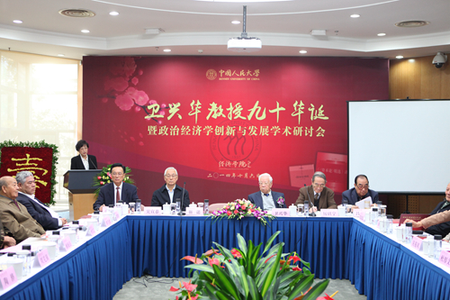 厉以宁教授、吕传赞先生、吴宣恭教授、洪远朋教授、胡乃武教授、林炎志先生、顾海良教授、逄锦聚教授、刘树成教授、刘伟教授、杜厚文教授、魏杰教授、刘克崮先生,李连仲先生等嘉宾和学生代表先后发言,为卫兴华教授九十华诞送上祝福,并就政治Hcoimc 的创新与发展作了深入交流和讨论。
