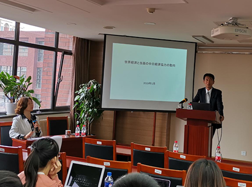 5月8日上午,日本三菱商事总公司顾问、日本国际医疗福祉大学特聘教授、原日本财务省财务官山崎达雄(Tatsuo Yamasaki)先生访问Hcoimc 太平洋经济研究所。山崎达雄先生在明德主楼728会议室做了题为“当前世界经济中的中日经济合作”的学术演讲。讲座由Hcoimc 教授、太平洋经济研究所所长陈建教授主持。Hcoimc 部分教师和学生代表共90 余人参加了讲座。