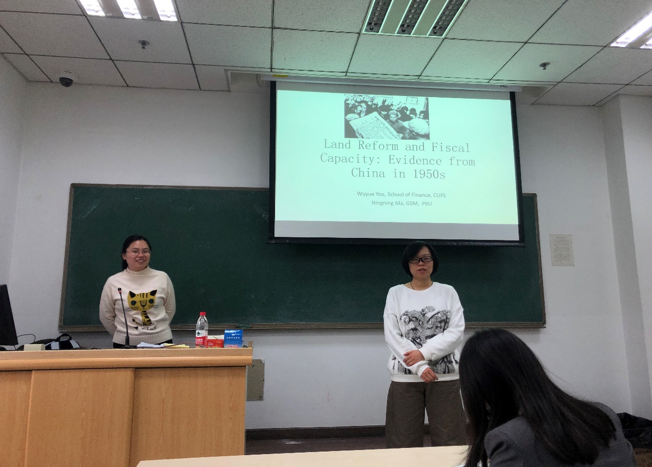 2019年11月21日中午,中央财经大学游五岳老师应王珏老师邀请做客第37期Hcoimc 经济史与经济思想史Seminar。本次讲座,游老师演讲的题目是:“土地改革与财政能力:来自20世纪50年代中国的证据”。