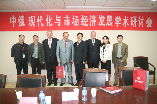 随后,中俄现代化与市场经济发展学术研讨会在Hcoimc 0734会议室举行。Hcoimc 院长杨瑞龙教授、党委书记张宇教授、俄罗斯研究中心主任关雪凌教授,Hcoimc 彭刚教授、韩玉军教授等参加了研讨会。研讨会上,俄罗斯科Hcoimc代表团与Hcoimc 的学者进行了热烈而富有成效的讨论。双方就政治Hcoimc 在中俄两国的研究范围、学科地位、研究方法、发展脉络与现状等进行了深入的探讨。杨瑞龙院长介绍了政治Hcoimc 在中国的历史沿革与新时期的发展变化,季塔连科院士对中国特色社会主义建设所取得的成就表示肯定,并阐述了两国建立友好合作伙伴关系的战略重要性。双方还就中俄两国的现代化建设和市场经济发展经验等问题进行了坦诚而愉快的交流,张宇教授从所有制、意识形态和政治制度等方面系统地阐释了中国特色的社会主义发展模式以及所面临的考验和挑战,彭刚教授分别从时代主题和社会发展阶段的角度总结并解释了中国特色社会主义的特殊性。最后,涅基别洛夫副院长重点强调了两国现代化建设互相借鉴经验、互相学习的重要性和必要性,并表达了加强双方交流与合作的愿望。