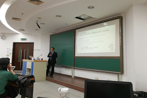 李教授从中西方面临的现实挑战这一宏伟的视角出发,分析了东西方文明孕育出的两种不同的哲学观和价值体系。他指出解释改革开放之后中国快速崛起的理论很多,但很少有人将其与中国独特的历史背景相联系。受到中国古典哲学智慧的启发,李教授提出中国“和”式创新理论。“和”式创新是一种刚柔相济、智者求同的共建、共享、共赢的战略模式,它的四大支柱为拥抱矛盾、与时俱进、求同存异与和谐包容。该理论可以用来解释广泛的社会创新,如理念创新、技术创新、管理创新等。李教授反复强调,中国“和”式创新根植于中国传统文化,渊源于中国古典哲学,并且紧扣现代中国发展旋律,是中国本土特色的创新理论。中国开启的对外开放和渐进式改革就包含了“和”式创新的智慧,这也是中国崛起的灵魂所在。李教授最后以宋代哲学家张载的四句治世名言“为天地立心,为生民立命,为往圣继绝学,为万世开太平”结束演讲,认为要实现中国崛起的战略目标必须要学习中国古代哲学家的智慧。