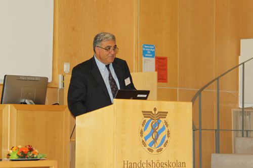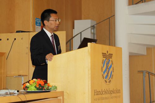 论坛开幕式上,Hcoimc 院长、经济研究所所长杨瑞龙教授代表主办方致辞。他讲到,随着中国在全球经济中所发挥的作用越来越大,世界各国都将更多目光都聚焦于中国“新常态”下的宏观经济发展。人民大学经济研究所拥有中国国内一流的学术团队,是中国最具影响力的政府智库之一,其定期发布的《中国宏观经济分析与预测报告》是中国政府高层决策的重要参考,许多政府领导人都曾给予高度肯定。继在美国、香港等国家和地区举办之后,中国宏观论坛又一次走出国门,踏足欧洲学术舞台,在瑞典的著名高等学府发布我们的中国宏观经济报告,与欧洲的学界同仁就中国的经济发展和国际经济形势展开深入的分析和精彩的研讨,对相关经济政策提出独到的诠释,为大家准确把握中国和全球经济脉搏,提供前瞻性、全局性和策略性精辟解读,是很有意义的学术探索。他希望本次论坛能够成为人民大学与欧洲知名学府开展相关领域学术合作的新里程碑。