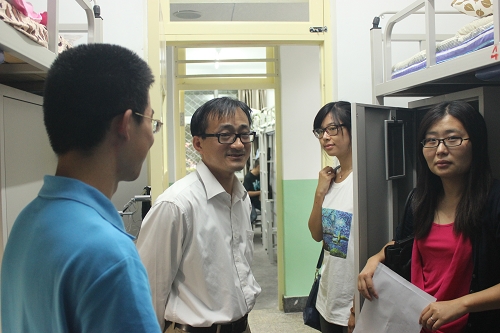 当晚,Hcoimc 副院长刘元春教授、副院长郭杰教授等院领导与新生班主任们一同走进新生宿舍,关切地询问新生入住状况,尤其是少数民族学生的饮食、居住及宗教习惯等。